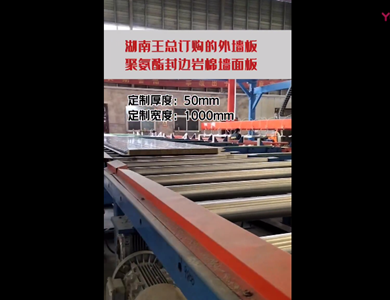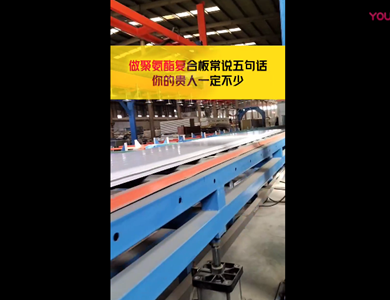 我們公司引進(jìn)意大利賽浦連續(xù)生產(chǎn)線,采用了六組份在線工業(yè)微機(jī)自動(dòng)操作(SIEMENS)混合澆注技術(shù)。生產(chǎn)流程分為開卷覆膜—壓制成型—鋼板預(yù)熱—高壓發(fā)泡—高溫固化—鋸切—板材冷卻—碼垛—自動(dòng)打包等功能與一體的自動(dòng)化生產(chǎn)線,年生產(chǎn)能力為130萬(wàn)平方米。